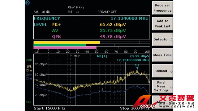 - 加權(quán)檢波器:峰值、RMS、準(zhǔn)峰值、平均值和 RMS 平均值
